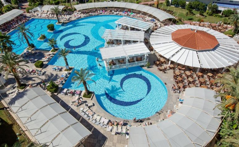 Основен ресторант, 5 а - ла - карт ресторанта(турски, италиански, и мексикански; морски и грил - срещу заплащане), 8 бара, сладкарница, дискотека, 3 открити басейна, 1 закрит басейн, конферентна зала. За децата: детско меню, детски басейн, аквапарк, детска площадка, мини-клуб (4-12 год.), детегледачка (платено). Безплатни услуги: турска баня, сауна, парна баня, джакузи, фитнес аеробика, аквааеробика, плажен волейбол, баскетбол, 2 тенис корта с твърдо покритие, тенис на маса, дартс, мини-голф, боча, баскетбол, анимационна програма, дискотека, безжичен интернет (в лоби). Платени услуги: масаж, боулинг (2 пътеки), билярд, видео игри, игрални автомати, наем на тенис ракети и топки, осветление на тенис кортовете, уиндсърфинг (с лиценз), интернет кафе, водни спортове, СПА - център. Плаж: Собствен на 50м. от хотела, пясъчно - каменист. Бар на плажа - безплатно. На басейна и на плажа: чадъри, шезлонги, матраци - безплатно. Плажни хавлии – с карта за плажни хавлии, срещу депозит.
