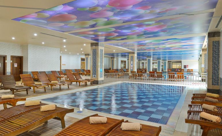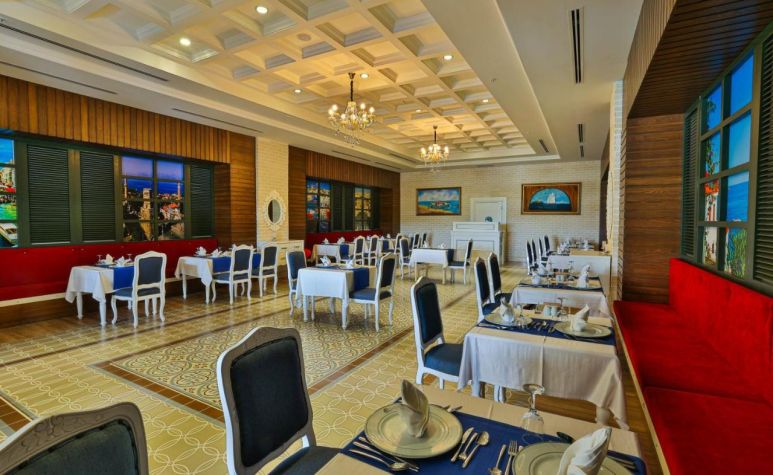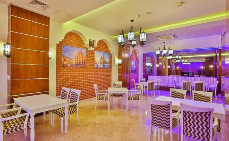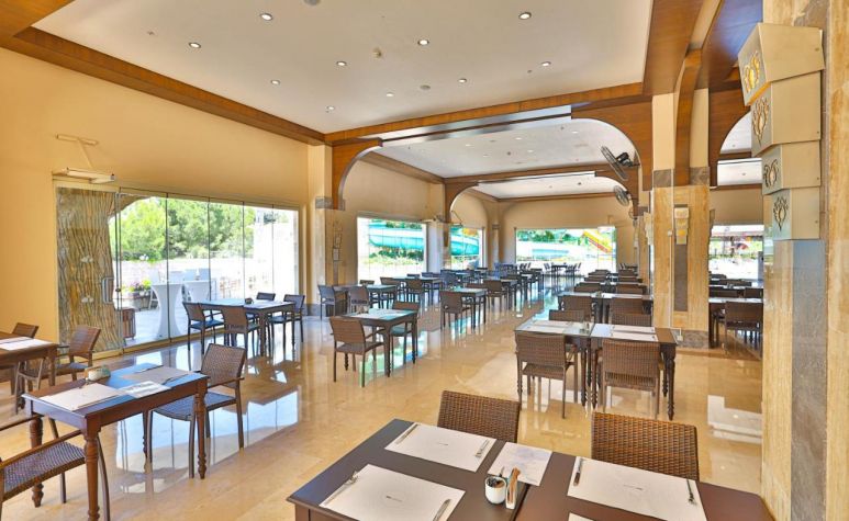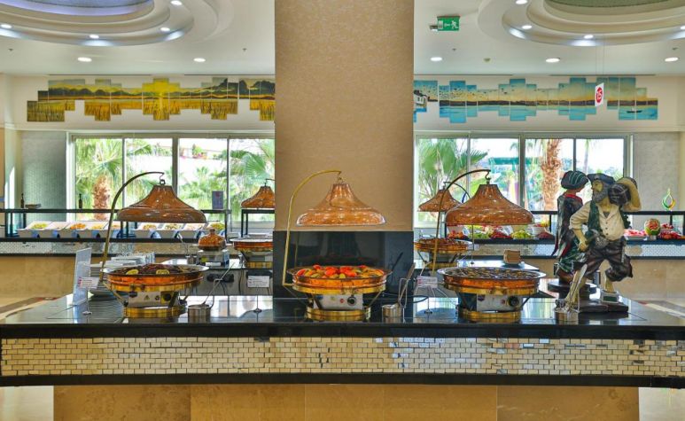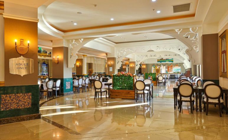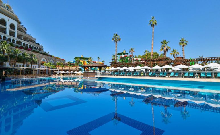Основен ресторант, 7 ресторанта а - ла -карт (азиатски, мексикански, османски и рибен, барбекю, италиански и вилидж - срещу доплащане), 7 бара, сладкарница, 4 открити и 1 закрит басейн, 11 водни пързалки, лекарски кабинет, SPA-център, 2 конферентни зали. За децата: външен и вътрешен детски басейни, водни пързалки, детско кино, детска площадка, мини клуб(4-12г.), тийн клуб(13-16г.), детски а-ла-карт ресторант - с предварителна заявка. Безплатни услуги: турска баня, 2 сауни, фитнес, парна баня, солена стая, вътрешен басейн, 2 тенис корта, плажен волейбол, тенис на маса, водно поло, аеробика, зумба, боча, дартс, пилатес, йога, мини голф, мини футбол, плажен волейбол, сейф, паркинг, WI-FI, анимация, дискотека. Платени услуги: фризьор, СПА център, лекар, детегледач, магазини, боулинг, билярд, тенис оборудване, водни моторни спортове, бебефон.