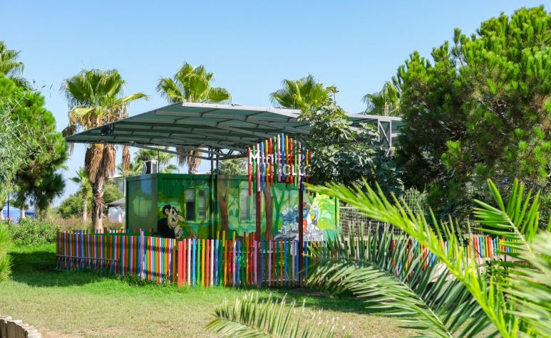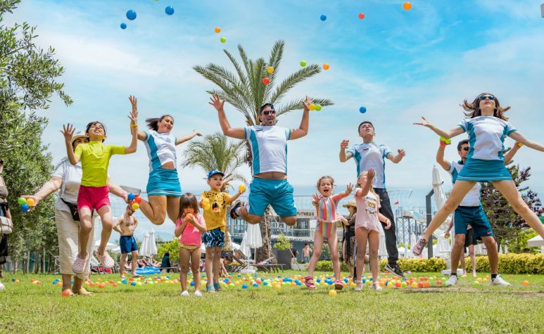 За децата: 2 открити и 1 закрти детски басейн, детска площадка, мини клуб (4-12 г), детска анимация, детска количка (под наем).