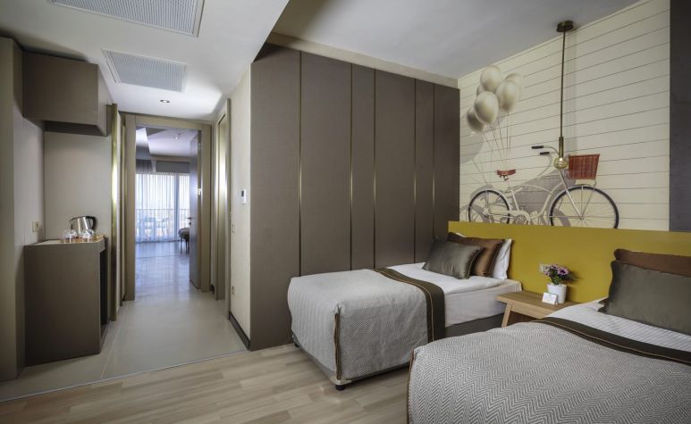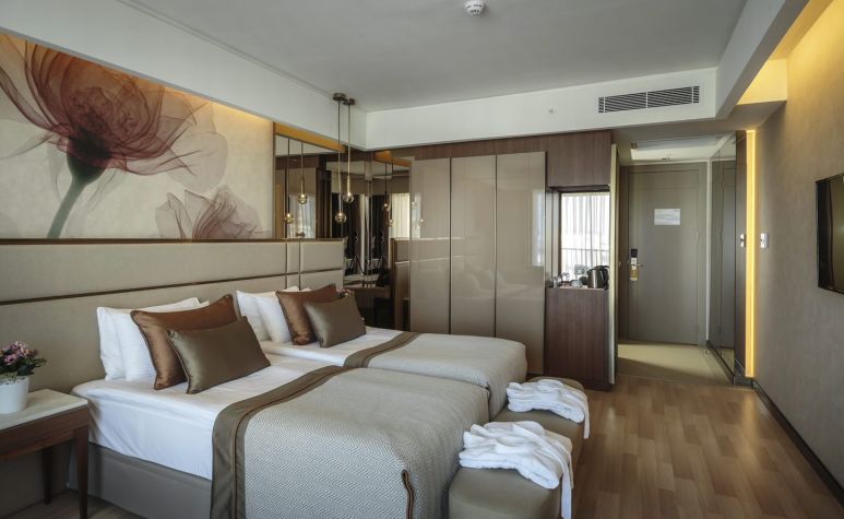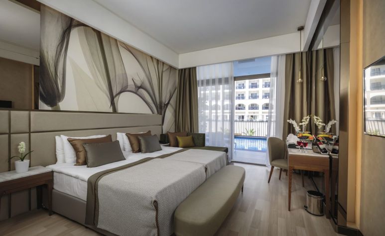 Хотелът разполага с общо 362 стаи, разположени в 8-етажна основна сграда, от които 177 Standart Room (35 м2), 80 Standart Pool Side Room (с изглед басейн - 35 м2), 52 Standart Sea Side Room (със страничен изглед море - 35 м2), 10 Swim Up (с директен достъп до общ басейн - 35 м2), 36 Family Room (2 спални, 2 бани - 55 м2), 3 Disabled Room (пригодени за хора с ограничена подвижност - 35 м2), 2 Penthouse Suite (1 спалня, 1 баня с джакузи, голяма тераса - 115 м2), 2 King Suite (2 спални, всекидневна, 2 бани, разположени на 2 етажа - 140 м2).