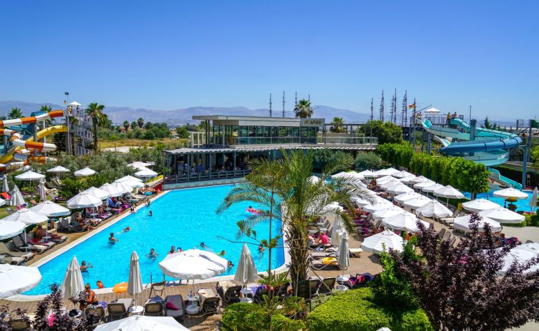 Основен ресторант, 1 а-ла-карт ресторанта (турски или средиземноморски – 1 безплатно посещение при минимум 5 нощувки, с предварителна резервация), 2 снек ресторанта (при басейна и на плажа), сладкарница, 4 бара, 3 открити и 1 закрит (отопляем в определени от хотела периоди) басейн, 3 водни пързалки, СПА център, магазини, 1 конферентна зала.