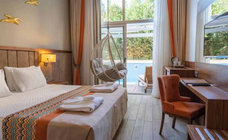 Хотелът се намира на 58 км от летището в Анталия, на 7 км от гр. Сиде, на 250 м от собствения си плаж. Хотелът е построен през 2015 година, обща площ 7 000 м2.
