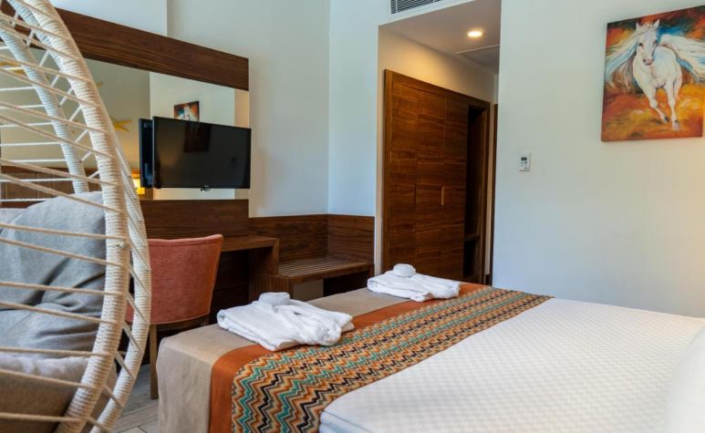 Хотелът разполага с общо 207 стаи, разположени в една 4-ри етажна основна сграда, от които 167 standard room ( 28 м2); Eco Room (без балкон, на първи етаж, 28 м2); 40 двустайни family room (2 спални с врата, 37 м2). Почистване на стаите - всеки ден, смяна на спалното бель - 3 пъти в седмицата.