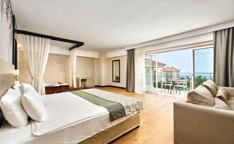 Хотелът разполага с общо 674 стаи, разположени в 8-етажна основна сграда, от които 15 Economy (с френски балкон - 30 м2), 140 Standard Land View (изглед суша - 30 м2), 190 Standard Side Sea View (страничен изглед море - 30 м2), 97 Standard Sea View (изглед море - 30 м2), 64 Standard Comfort (разположени на висок етаж, с изглед басейн или море - 30 м2), 30 Standard Child Friendly (разполагат с 1 двойно и 2 единични легла - 30 м2), 132 Family Room (2 спални, 1 баня - 50 м2), 6 Grand Suite (с изглед море, спалня, баня, джакузи - 80 м2).