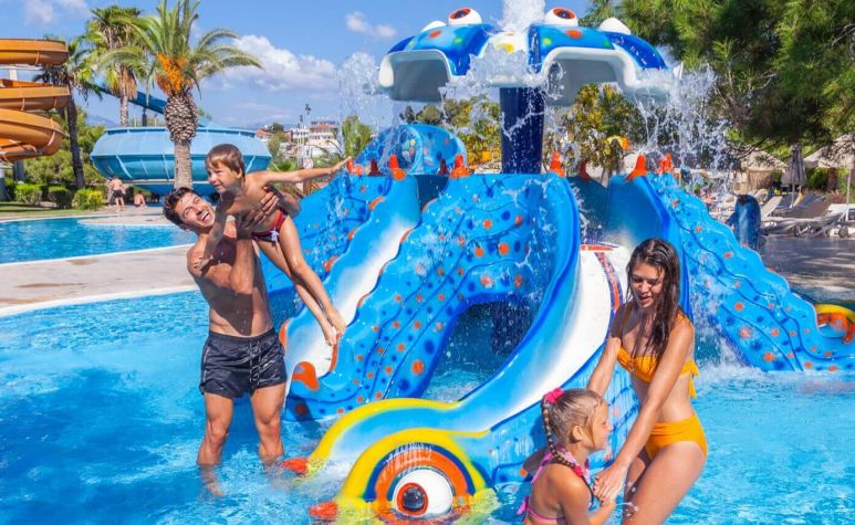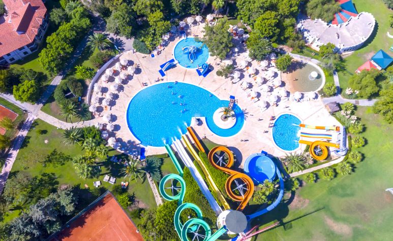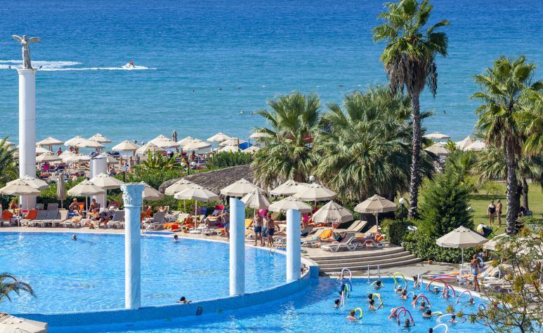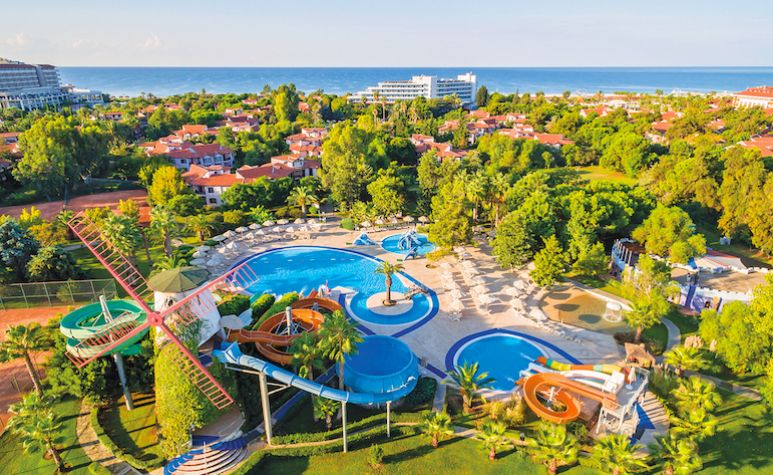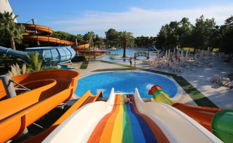 основен ресторант, 12 а-ла-карт ресторанта, 9 бара, 5 басейна, 3 вътрешни басейна, аквапарк с 11 пързалки, дискотека, СПА център, турска баня, сауна(био, руска, класическа), спортен център (футбол, тенис, голф, езда), конферентна зала, амфитеатър, анимация, WI-FI. Безплатни услуги: турска баня, сауна, фрешове на закуска, анимация, тенис на маса, дартс. Платени услуги: тенис корт, телефон и факс, магазини, билярд, моторни водни спортове, За децата: детски басейн, 6 детски пързалки, анимация, мини клуб (4-12г.), мини диско, тийн клуб(13-16г.). Плаж: собствен, пясъчен. Чадъри и шезлонги на плажа и басейна - безплатно.