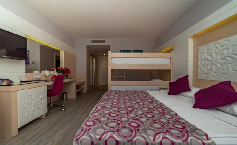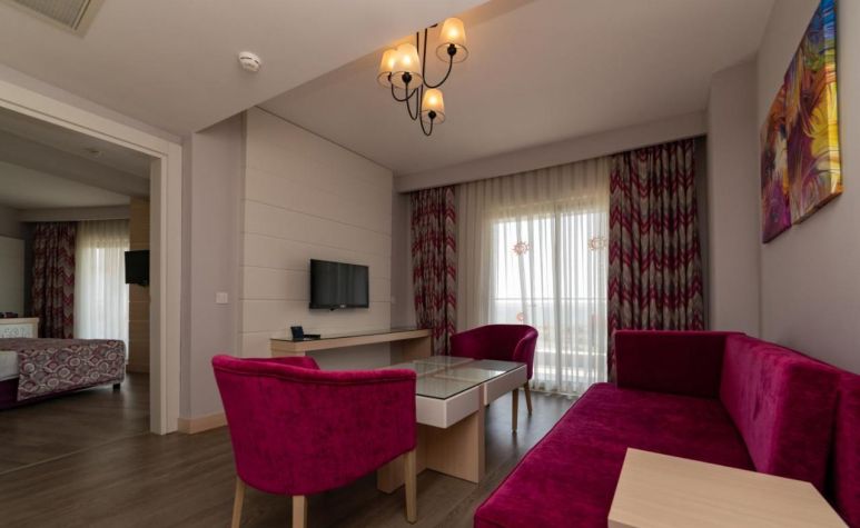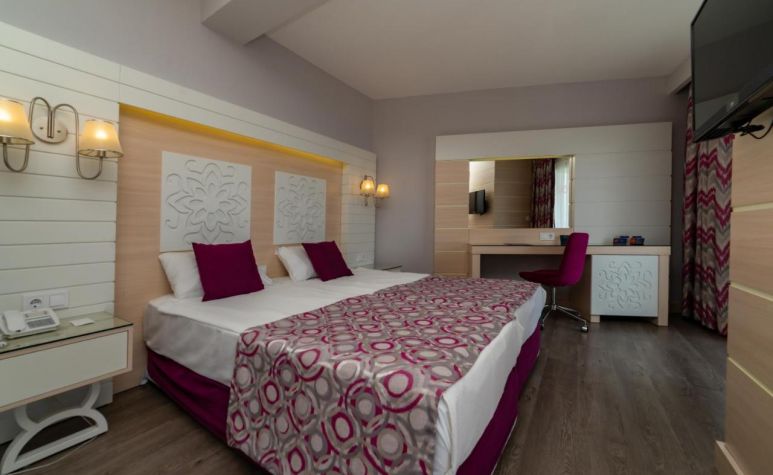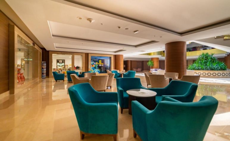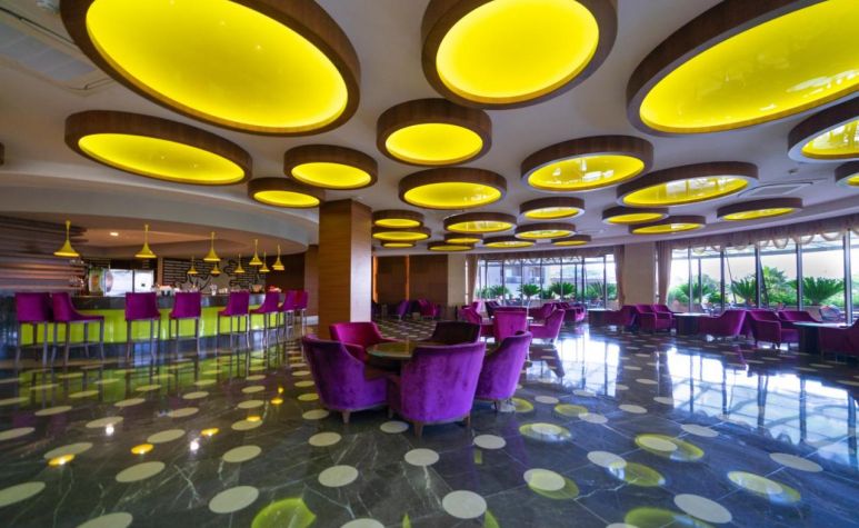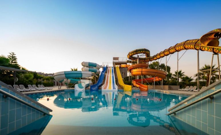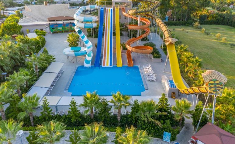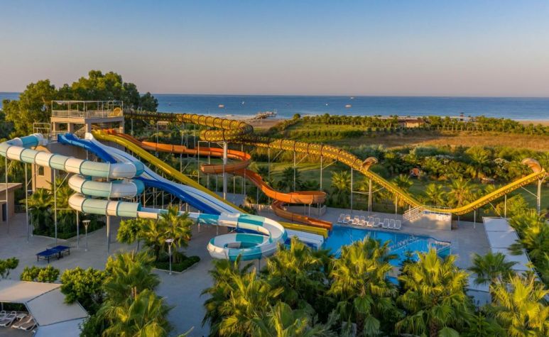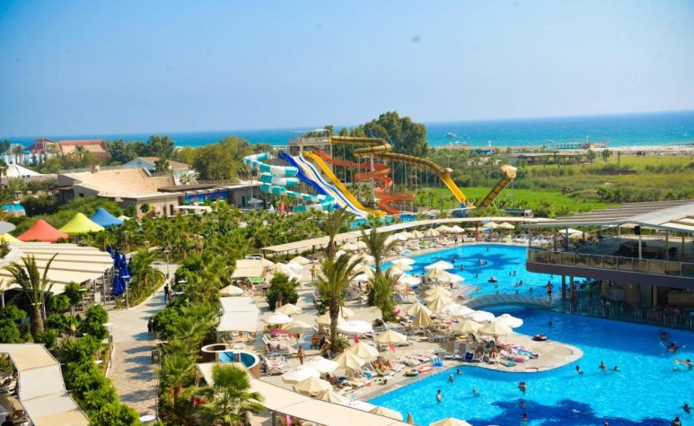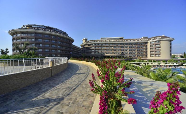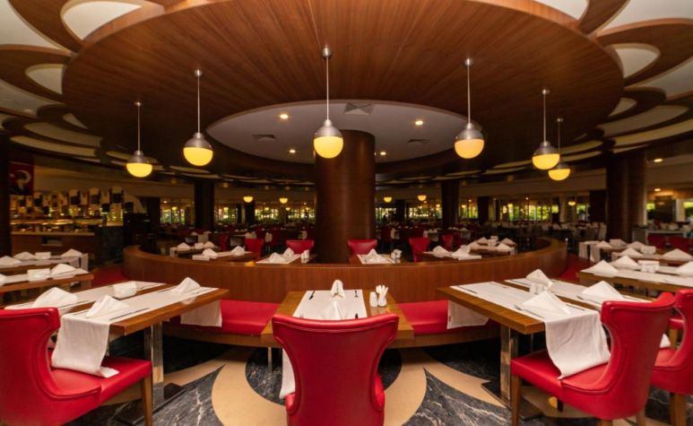 Основен ресторант, 4 а-ла-карт ресторанта (турски, китайски, италиански, рибен, с предварителна резервация, за едноседмичен престой едно безплатно посещение на един ресторант), кафе-сладкарница, 6 бара, 3 открити и 1 закрит басейн, водни пързалки, 2 тенис корта, амфитеатър, дискотека, конферентна зала, мини маркет. За децата: детски басейн, анимация, мини клуб (4-12 г.),тийни клуб (11-15 г.). Безплатни услуги: сауна, турска баня, фитнес, аеробика, плажен волейбол, тенис на маса, тенис корт, дартс, боча, анимация, Wi-Fi(в лоби). Платени услуги: Масаж, фризьор, лекар, химическо чистене, боулинг, билярд, електронни игри, игрални автомати, рент-а-кар, тенис екипировка, осветление за тенис корт, водни спортове.