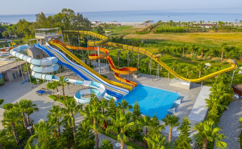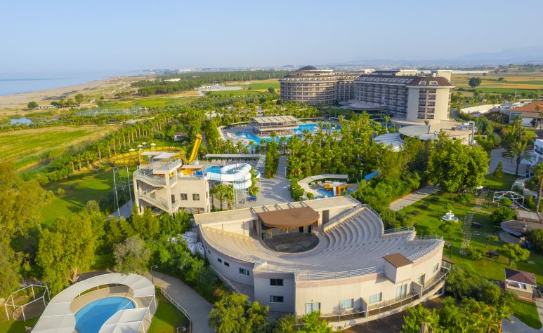 Основен ресторант, 4 а-ла-карт ресторанта (турски, италиански, китайски – 1 безплатно посещение на 1 от ресторантите при минимум 7 нощувки, с предварителна резервация; рибен - срещу заплащане, с предварителна резервация), 2 снек ресторанта, 5 бара, 3 открити и 1 закрит басейн, аквапарк с 6 водни пързалки за възрастни и 2 за възрастни, СПА център, магазини, 1 конферентна зала.