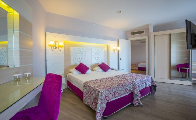 Хотелът разполага с общо 590 стаи, разположени в основна сграда, от които 18 Economy Room (без балкон - 35 м2), 190 Superior Room Land View (изглед суша – 35 м2), 117 Superior Room Side Sea View (страничен морски изглед – 35 м2), 47 Superior Room Sea View (морски изглед – 35 м2), 105 Superior Bunkbed Room (разполага с допълнително двуетажно легло – 35 м2), 86 Family Room (2 отделни спални, 2 бани – 60 м2), 15 Suite Room (100 м2).