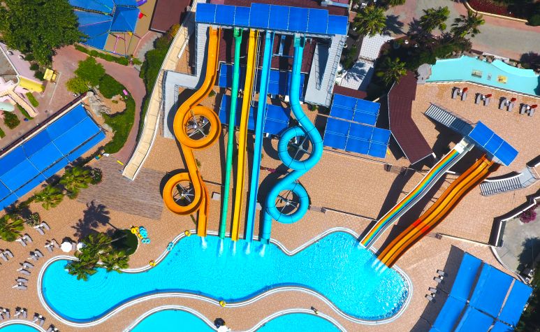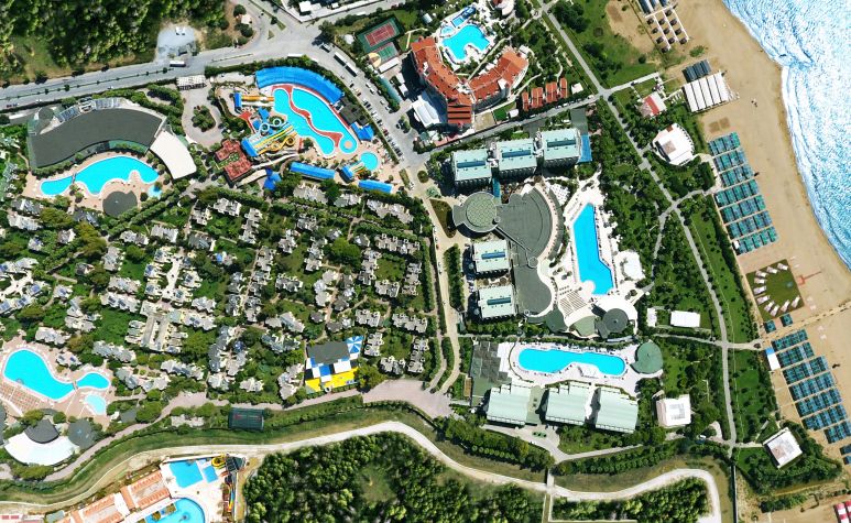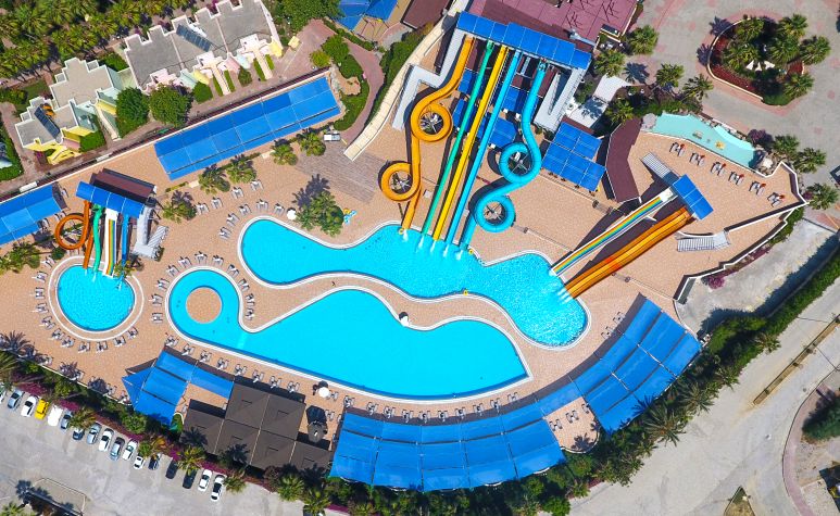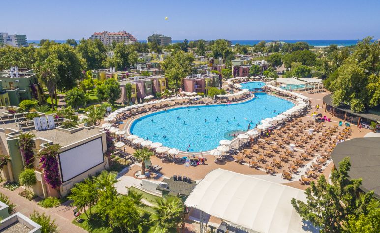 Основен ресторант, 7 а-ла-карт ресторанта (срещу заплащане), бар, 2 открити басейна, аквапарк с 13 водни пързалки, Спа център, сауна, турска баня, масажи, джакузи, безмоторни водни спортове, кану, водни колела. Безплатни услуги: интернет ( в лобито) плажен волейбол, баскетбол, гимнастика, аеробика, тенис на маса, дартс. Платени услуги: билярд, боулинг, видео игри, химическо чистене. За децата: детски басейн, мини клуб, 4 водни пързалки. Плаж: пясъчен, на 450 м. от хотела. Чадъри, шезлонги и плажни кърпи на плажа и при басейна - безплатно.