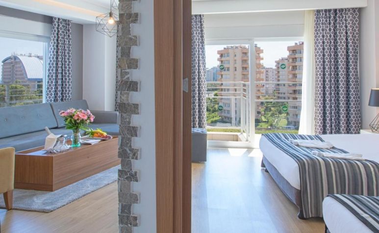 Намира се на 11 км. от летище Анталия, на 13 км. от центъра на Анталия, на 750 м. от брега на морето (през път). Построен през 2019г., с обща плащ 28 000 м2.