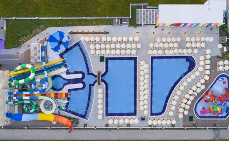 Основен ресторант, 2 а-ла-карт-ресторанта (срещу заплащане с предварителна резервация), 6 бара, 5 открити и 1 закрит басейн, детски басейн, аквапарк, Спа център, мини клуб (4-12) фитнес, анимация, мини диско
