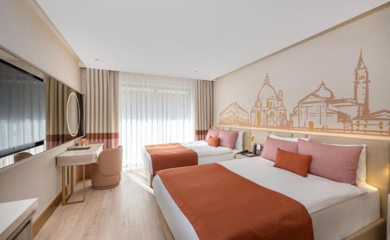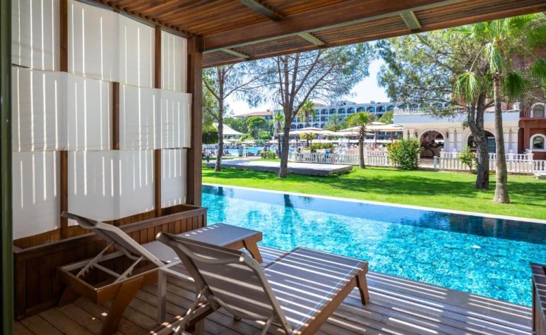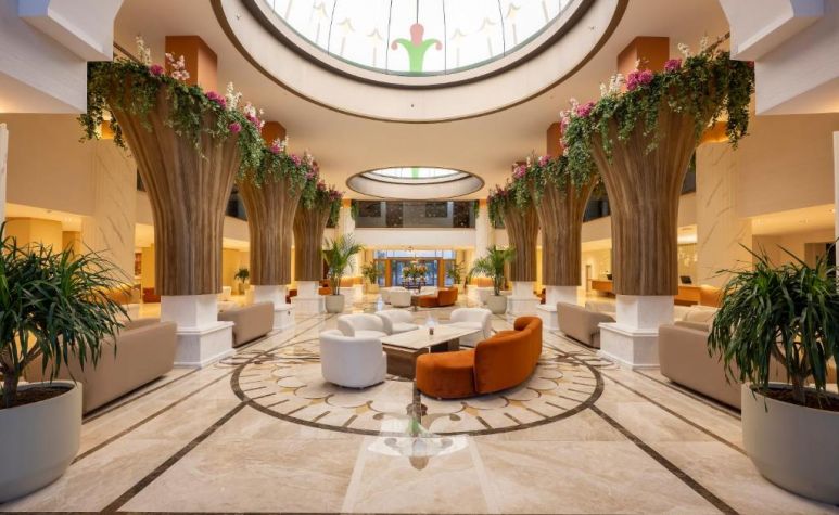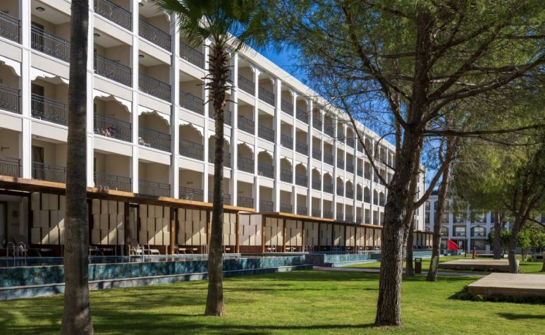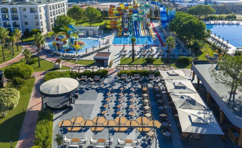 Намира се на 15 км от летище Анталия, на 20 км от центъра на Анталия, на 5 км от центъра на Лара, на брега на морето. Построен 2003г., на обща площ от 118 000 м2. Изцяло реновиран 2024-2025 г.