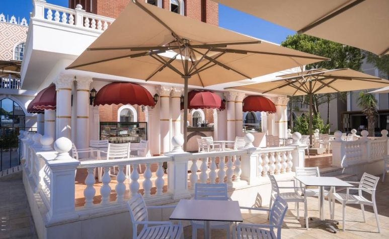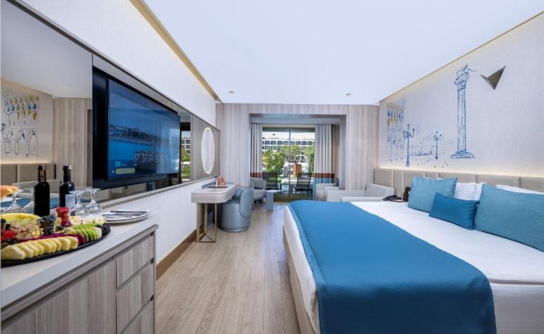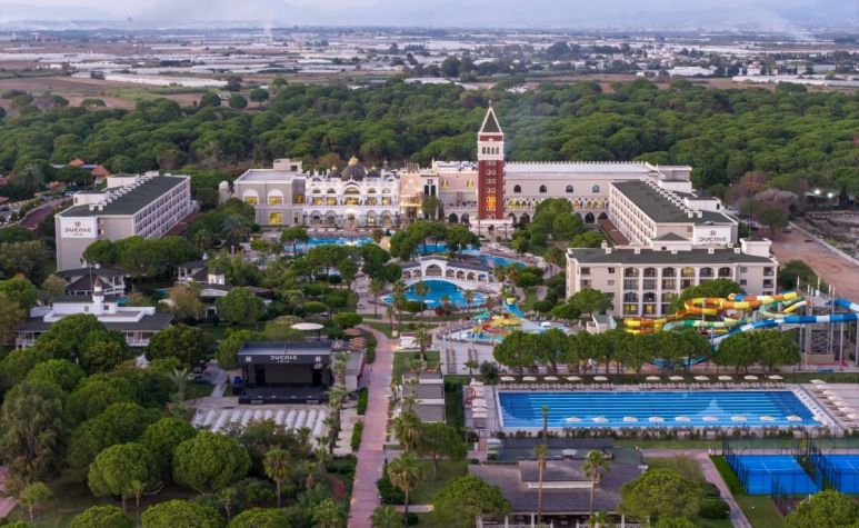 Основен ресторант, 4 а-ла-карт ресторанта – рибен, италиански, турски, стек (срещу заплащане, с предварителна резервация), 3 снек ресторанта, станция за бързо хранене, гьозлеме, 3 сладкарници, кафетерия, 7 бара, диско бар, 3 открити и 1 закрит (отопляем) басейн, аквапарк, СПА център, магазини, 2 конферентни зали, паркинг.
