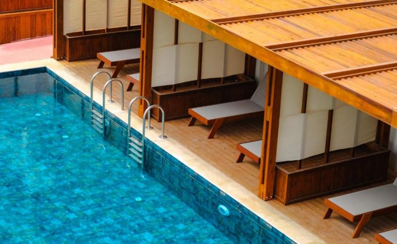 Собствен, пясъчно-чакълест, с дължина на плажната ивица 216 м. Чадъри, шезлонги и плажни кърпи на плажа и при басейна - безплатно.