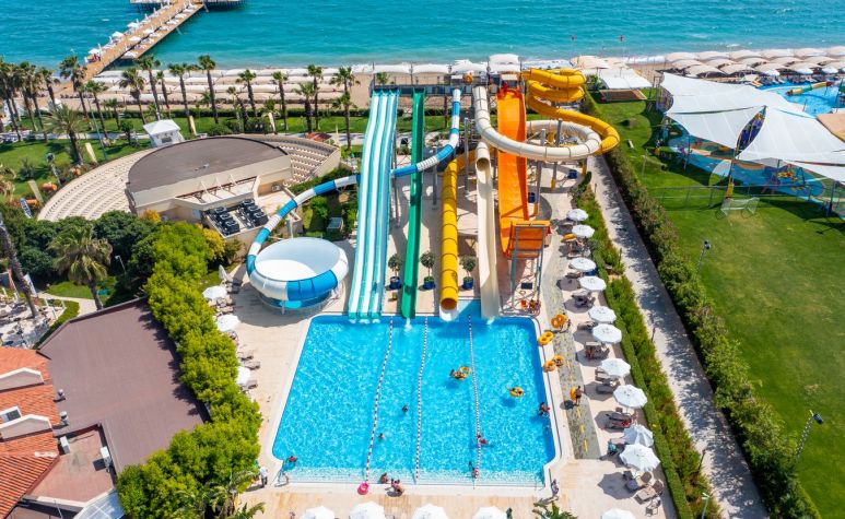 Основен ресторант, 5 а-ла-карт ресторанта (турски, средиземноморски, италиански, интернационален, азиатски, световен – срещу заплащане), 6 бара, 5 открити и 1 закрит басейн, дискотека, сладкарница, СПА център, аквапарк, 8 конферентни зали, Wi–Fi (в лоби).