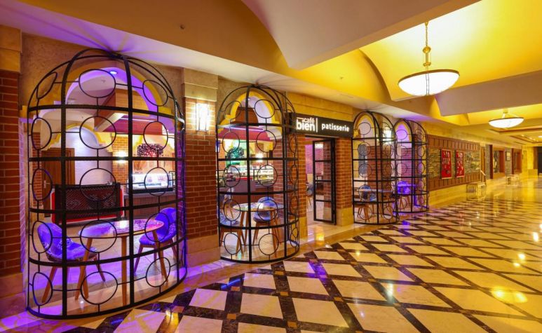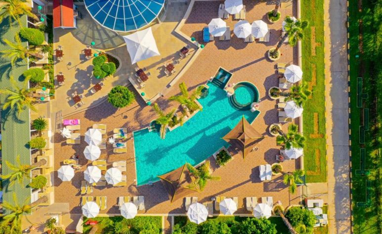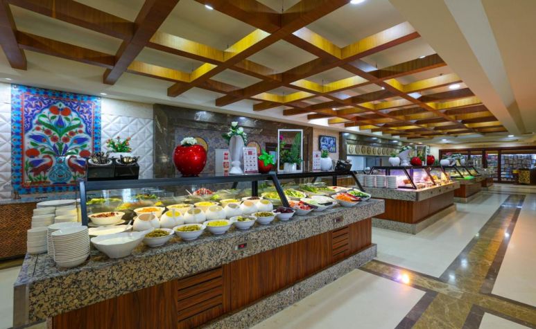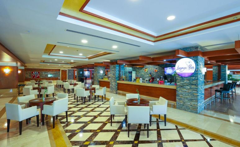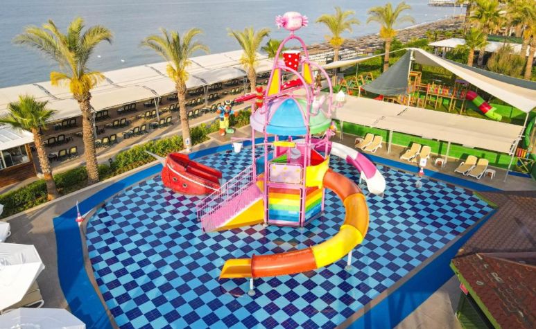 Основен ресторант, 3 a - лa - карт ресторанта ( турски, италиански, мексикански — с предварителна резервация, 1 безплатно посещение на един от ресторантите по време на престоя), 5 бара, 2 открити басейна, закрит басейн, 3 водни пързалки (за възрастни), Spa & Wellness център За децата: детски басейн, водни пързалки, мини клуб за деца ( 4-12г.), младежки клуб( 14-16г.), детегледачка ( платено ), детско меню в ресторантите, детско столче за хранене, детска площадка, развлекателни програми. Безплатни услуги: сауна, турска баня, джакузи, фитнес център, тенис кортове, тенис на маса, баскетбол, плажен волейбол, мини - футбол, аеробика, сърф, канута, дартс, дискотека, кинозала, дневни и вечерни развлекателни програми. Платени услуги: масаж, интернет кафе, фризьор, футболно игрище с осветление, осветлението на тенис кортовете вечер, топки и ракети за тенис, уроци по тенис, боулинг, билярд, голф, конна езда, водни ски, парашути, джетове.