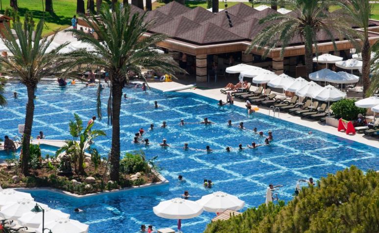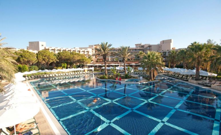 Основен ресторант, 4 ресторанта a- лa- карт (морски и турски - с предварително записване, мексикански и италиански - срещу доплащане), 6 бара, 2 сладкарници, 2 открити и 1 закрит басейн, 4 водни пързалки. За децата: детски бюфет, детски басейн, водни пързалки, детска площадка, мини - клуб (4-12 год.). Безплатни услуги: турска баня, сауна, парна баня, джакузи, сейф, 5 тенис корта, плажен волейбол, фитнес, тенис на маса, аквааеробика, водна топла, аеробика, дартс, боча, интернет(на цялата територия) Платени услуги: масаж, билярд, голф (на 800м от хотела, 9 & 18 дупки), осветление на тенис кортовете, игрални автомати, интернет кафе, водни спортове, 2 голф игрища, детегледачка, лекар. П
