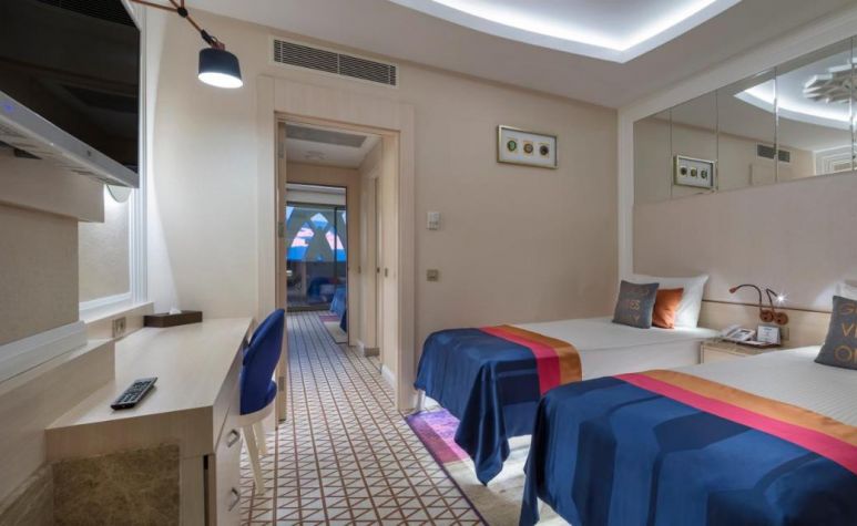 Хотелът разполага с общо 872 стаи, от които 580 стандартни стаи и 292 различни типове фамилни стаи. Всички стаи са оборудвани с: климатик, сателитна телевизия, телефон, баня с душ или вана, сешоар, минибар (със зареждане всеки ден), сейф (безплатeн), балкон. Почистване на стаите – всеки ден, смяна на бельото и кърпите – 3 пъти в седмицата.
