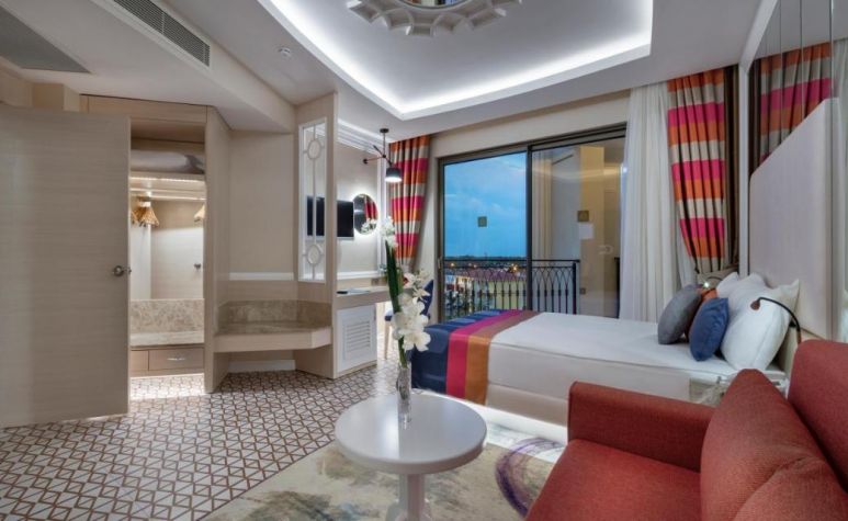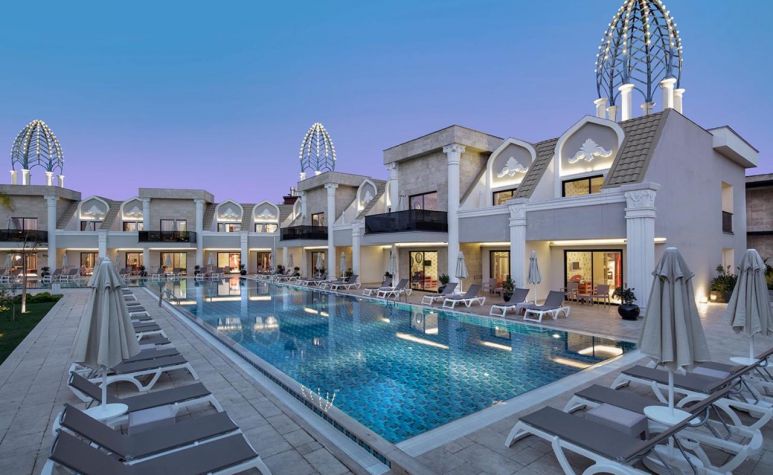 Хотелът се намира на 34 км. от летище Анталия, на 42 км. от центъра на гр.Анталия, на 2км. от делфинариум и аквапарк Troy. Откриване на 15.03 2017 г. с обща площ от 100 000 м2.