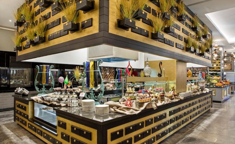 Основен ресторант, 3 а - ла - карт ресторанта (с предварителна резервация), 10 бара, 9 открити басейна,1 закрит басейн, водни пързалки, магазини, SPA център, дискотека, кино, 11 конферентни зали, паркинг.