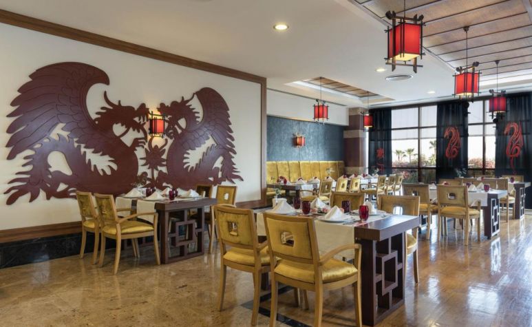 Основен ресторант, 4 a - лa - карт ресторанта (едно безплатно посещение с предварителна резервация по време на престоя), 4 бара, магазини, безплатен интернет в лобито на хотела, открит басейн, закрит басейн, аква парк, 5 водни пързалки.