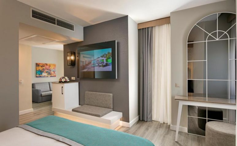 Стаи Main Building: 198 Standard room (25 м2), 12 Family room (1 спалня, 1 всекидневна, 1 баня – 40 м2), 3 Grand Suite with Jacuzzi (1 спалня, 1 всекидневна, 1 баня с джакузи – 45 м2).