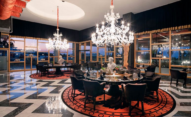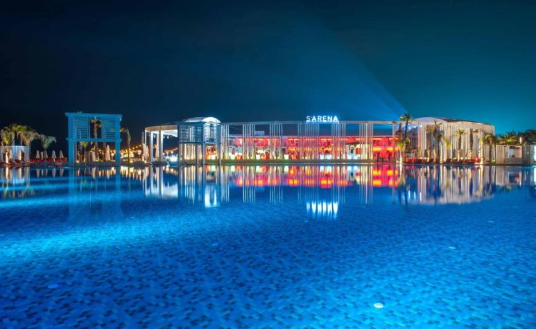 Основен ресторант, ресторант към клубните стаи, 4 а-ла-карт ресторанта (рибен, италиански, барбекю – 1 безплатно посещение на 1 от ресторантите при минимум 7 нощувки), 24/7 интернационален ресторант а-ла-карт, суши бар, сладкарница, снек ресторант, гьозлеме, 11 бара, 4 открити и 1 закрит басейн, аквапарк, увеселителен парк, кино, амфитеатър, жива музика, специални шоу програми, дискотека, СПА център, магазини, 5 конферентни зали, паркинг.