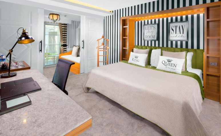 204 Luxury room (стаи с френски балкон - 4 от които за инвалиди – 45-62 м2),  55 Deluxe room (70-75 м2),  36 Superior room (с джакузи на балкона - 124 м2), 100 Family room (2 спални, 1 баня 37-43 м2), 8 Suite room (1 спалня, хол, 1 баня - 124 м2), 10 Premium Suite room (1 спалня, хол, 1 баня, джакузи на балкона - 160 м2), 4 Executive Residence Room (2 спални, хол, 1 баня - 186 м2), 2 King Residence Room (2 спални, хол с кът за хранене, 2 бани - 450 м2), 1 Presidential Residence Room (2 спални, хол с кът за хранене, 2 бани - 500 м2).