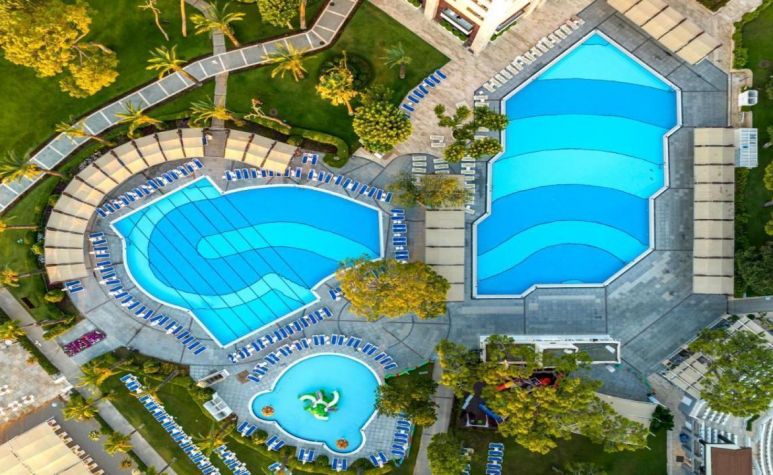 Основната сграда и общите части са реновирани 2020 г., а икономичните вили - през 2005 г. Базата на изхранване е Ultra All inclusive. На разположение на гостите са основен ресторант и 3 а-ла-карт ресторанта, 6 бара, 2 открити и един закрит басейн (релакс, основен и детски), аквапарк с водни пързалки, амфитеатър.