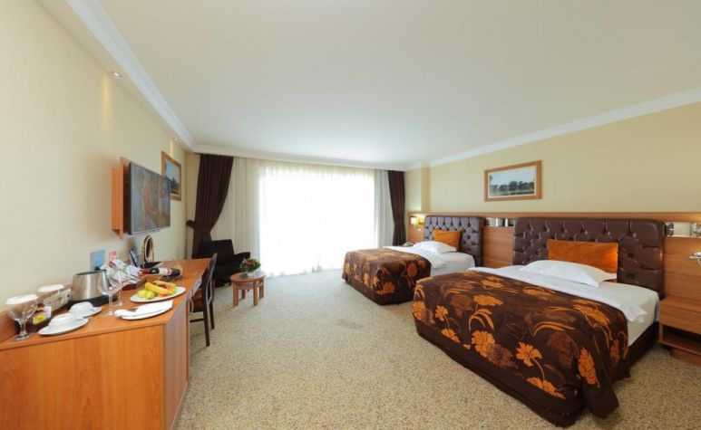 Основен ресторант, 2 а-ла карт ресторанта, 4 бара, открит и закрит басейн, библиотека, СПА - център, минимаркет, 3 футболни игрища, 2 конферентни зали За децата: детегледачка, мини клуб(4-12г.), открит басейн Безплатни услуги: сауна, турска баня, аеробика, баскетбол, волейбол Платени услуги: масаж, голф(пред хотела), видео игри, билярд, уроци по тенис, безжичен интернет, бизнес център, водни спортове.