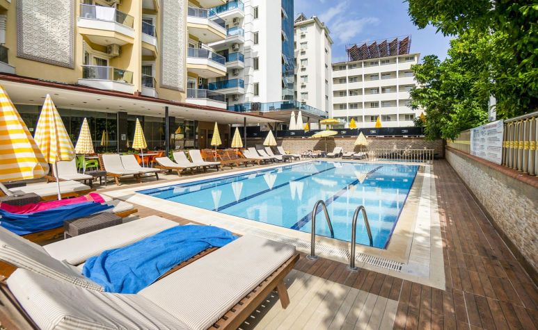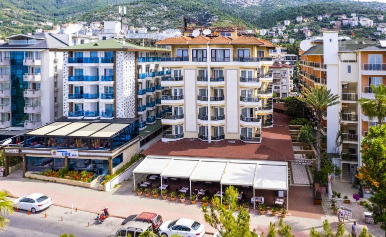 Намира се на 120 км от летище Анталия, на 130 км от центъра на Анталия, на 1 км от центъра на Алания, на 50 м от брега на морето. Построен 1993 г., на обща площ от 2 000 м2. Реновиран 2013 г. (стаи и общи площи).