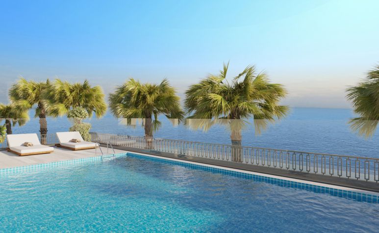 Собствен, с платформа. Чадъри и шезлонги на плажа и при басейна - безплатно, плажни кърпи срещу депозит.