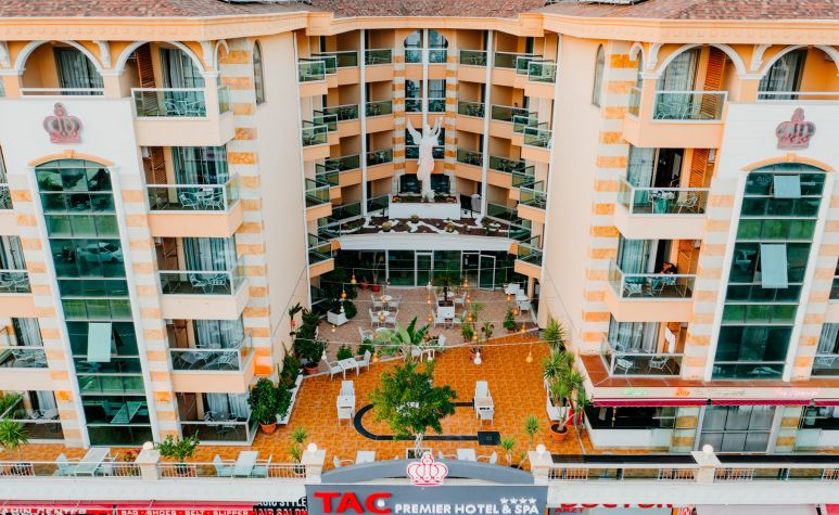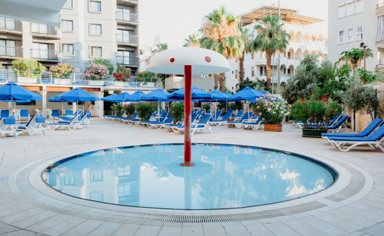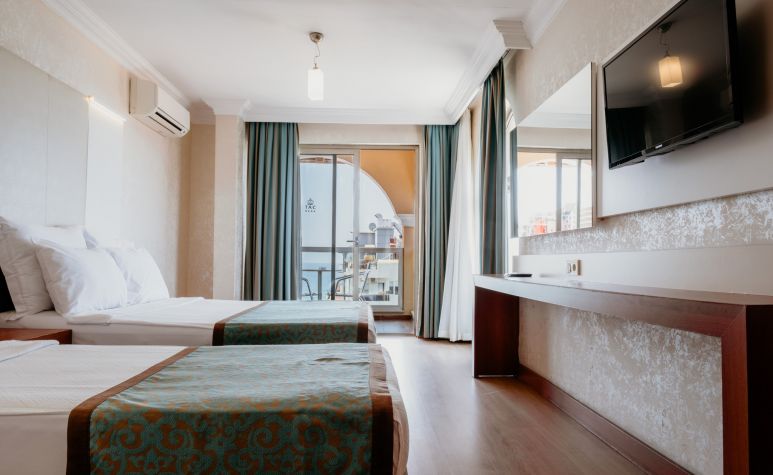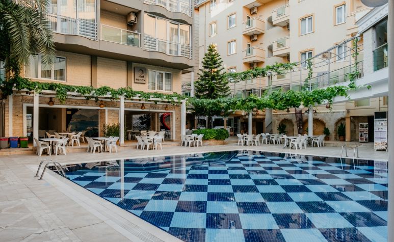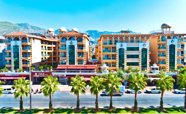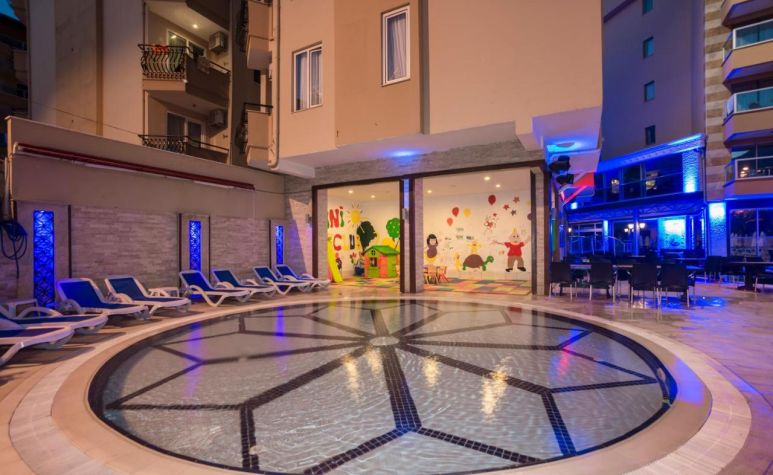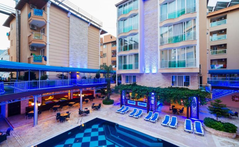 Намира се на 120 км от летище Анталия и на 40 км от летище Gazipaşa, само на 50 м от плаж Клеопатра, където притежава собствен плаж. Центърът на Алания се намира  на 1 км от хотела и до него се стига лесно с общетвен транспорт или такси. Построен през 2010г върху обща площ от 7.500 m², хотелът се състои от 7 отделни сгради и разполага с общо 293 стаи. Последно реновиран през 2020г.