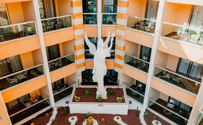 Хотелът разполага с общо 293 стандартни и фамилни стаи, разположени в общо 7 отделни 5 и 6-етажни сгради, свързани помежду си с мостчета. Всички стаи са с ламинат и балкон и са оборудвани с климатик, телевизор, телефон, баня с душ, сешоар, минибар (безплатно зареждане с вода), ползване на сейф (срещу доплащане).  Wi-Fi интернет в стаите - срещу доплащане. Почистване на стаите - всеки ден; смяна на хавлии - през 2 дни; смяна на спалното бельо - 3 пъти в седмицата.