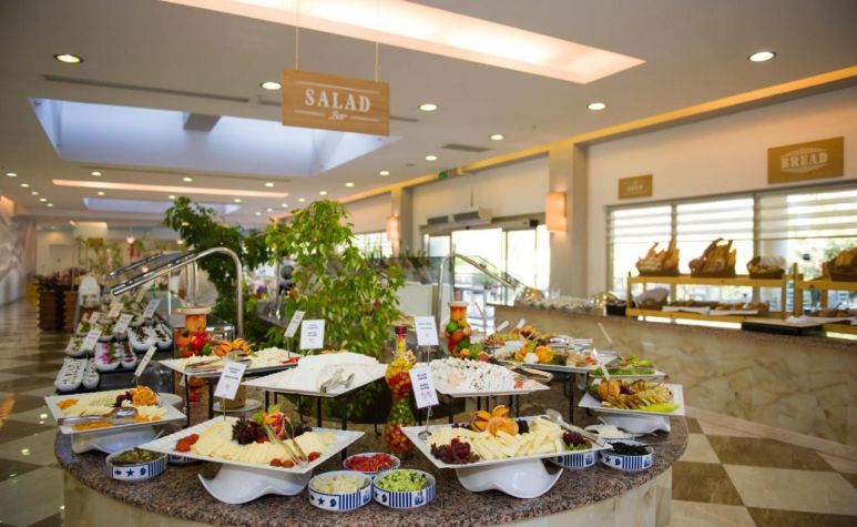 Основен ресторант „The Restaurant“„Pool Open Buffet”, Spice A-la-Carte Restaurant, Италиански ресторант Prima Cucina, Турски ресторант Taverna, Green & Grill Restaurant. Ресторантите Turkish Taverna, Spice и Prime Cucina A la Carte са само с резервация и гостите имат право да посетят всеки ресторант веднъж по време на престоя си. А-ла-карт ресторантите са отворени 6 дни в седмицата. Aegean Bar (Отворен 24 часа в денонощието, заплаща се след 00:00ч.), Pool bar, Chill Out Beach Bar, Disco/Chill Out Bar (23:00-02:00), Thea’s Coffee Shop & Juice Bar, 2 външни басейна (1900m², 480 m²), 1 вътрешен басейн (450 m²отопляем през май и октомври), 3 външни детски басейна и 1 вътрешен басейн (450 m², отопляем през май и октомври), 5 водни пързалки (2 за възрастни и 3 за деца), тенис корт, голф игрищe, СПА център, 3 конферентни зали, магазини, паркинг.