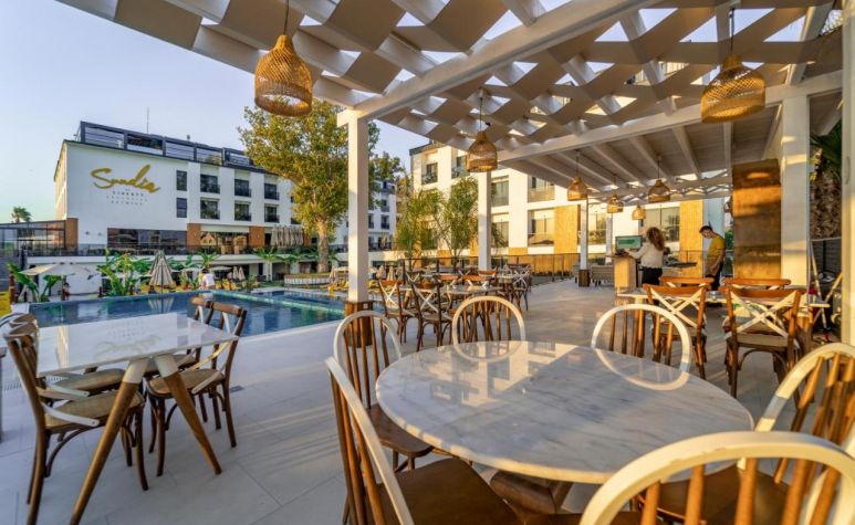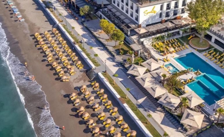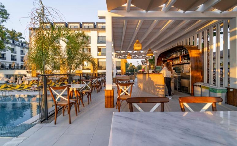 Плаж: хотелът се намира на 1 минута пеша от пясъчен плаж Calis. Шезлонги, чадъри и хавлии - безплатно на плажа и при басейна.