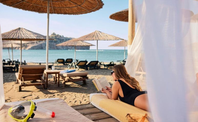Собствен, пясъчен плаж. Чадъри, шезлонги и матраци на плажа и при басейна - безплатно.