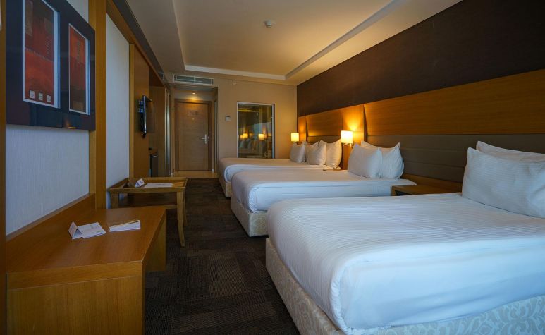 Хотелът разполага със 253 стаи, всички оборудвани с климатик, телевизор, телефон, баня с душ, сешоар, минибар /платен/, сейф, балкон. WiFi и безплатен частен паркинг са също на разположение.
