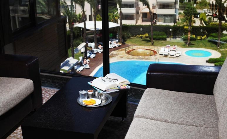 Хотелът се намира на 500 м от центъра на Чешме, на 72 км. от град Измир, на 3,5 км. от плажа.