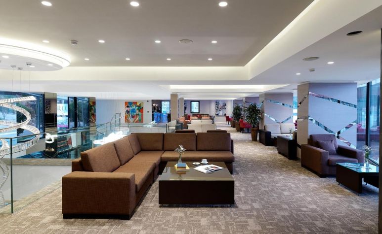 основен ресторант, а ла карт ресторант, 6 бара, дискотека, 5 конферентни зали, 3 открити басейна, детски басейн, вътрешен басейн, анимация. Услуги, предлагани в хотела безплатно: турска баня, сауна, парна баня, мини клуб, турска вечер, телевизионна и игрална зала, дартс, бинго, табла, тенис на маса, билярд (безплатно за 1 час), безжичен интернет, плажни кърпи, шатъл до плажа. Услуги, предлагани в хотела срещу заплащане: Витамин бар, джакузи, масажи, коли под наем, доктор, детегледачка, фризьор, фотограф, пералня, дискотека, СПА център. ПЛАЖ: собствен, пясъчен на 3,5 км. от хотела. Чадъри, шезлонги и матраци на плажа и басейна- безплатно.