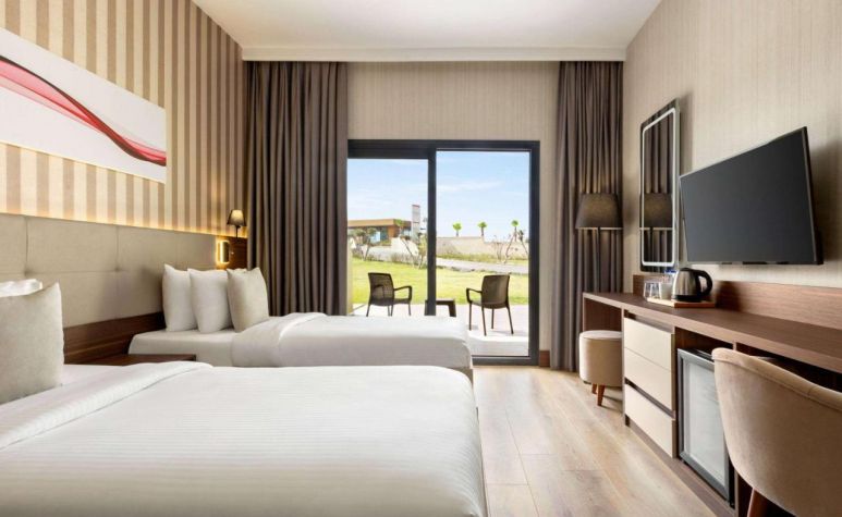 Хотелът разполага със 77 комфортни стаи (22 кв.м.) и 1 стая за инвалиди, всички оборудвани с климатик, телефон, телевизор, баня с душ/вана, сешоар, минибар, сет за чай/кафе, сейф, ютия, балнон.