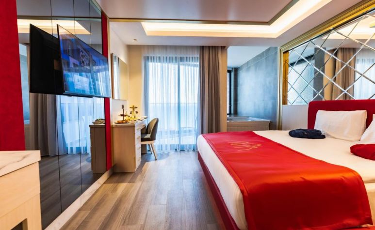Всички стаи са оборудвани с климатик, LED телевизор, телефон, тантра фотьойл, баня с душ и джакузи, сешоар, минибар (вода, безалкохолни напитки, бира, шоколадов десерт, ядки – безплатно с ежедневно зареждане), сет за кафе/чай, сейф (безплатен), балкон с масичка. При настаняване плато за кетъринг (локум, баклава, ядки, сушени плодове и шампанско при настаняване в Deluxe suite Partial sea view.