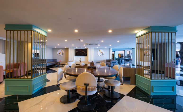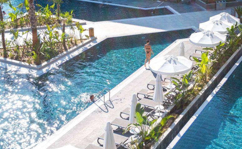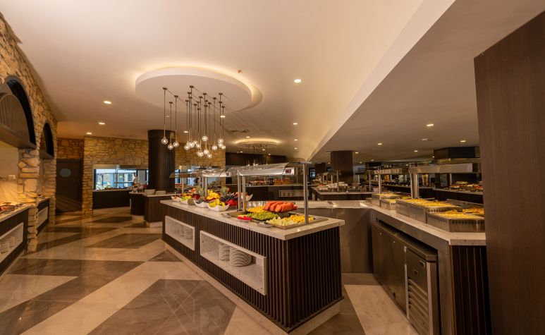 3 основни ресторанта (Gourmet, детски ресторант – IXY Planet,  She & He – в зоната за възрастни), 3 а-ла-карт ресторанта - Thymàri (средиземноморски, 1 безплатно посещение при минимум 5 нощувки), Mazu (азиатски), Apollon (стекхаус) - нужна е резервация за всички а-ла-карт ресторанти, 4 бара (лоби бар, 2 бара при басейните, бар на плажа), Старбъкс кафетерия (над 16-годишна възраст), сладкарница, дискотека, 1 основен открит басейн, басейн в зоната за възрастн фитнес център, СПА център.