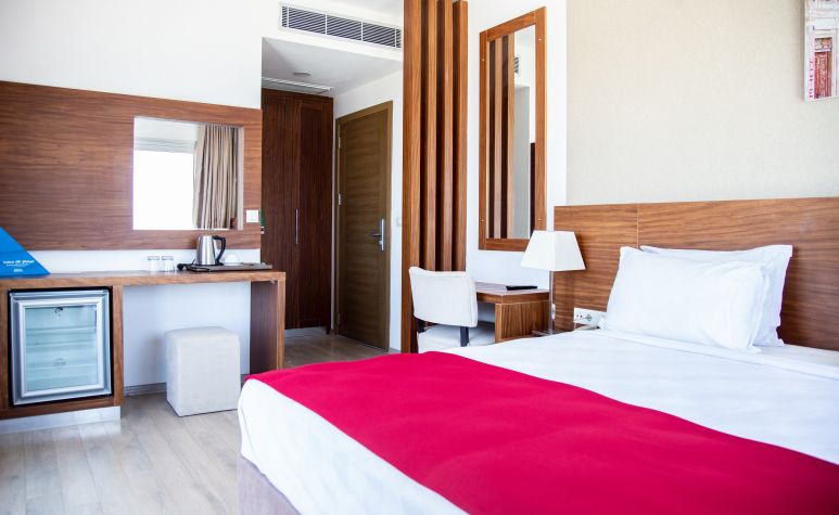 Хотелът разполага с 92 стаи, всички оборудвани с климатик, телевизор, телефон,баня с душ, балкон. Почистване на стаите всеки ден, смяна на спалното бельо - 2 пъти в седмицата.