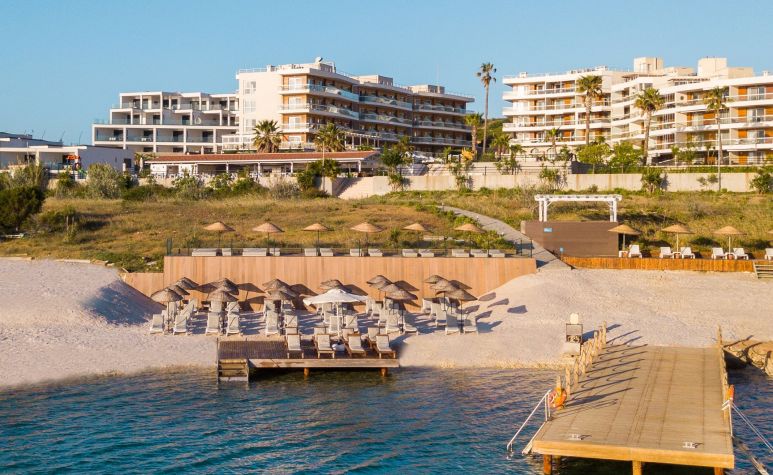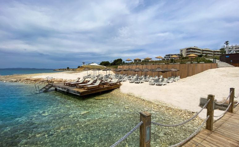 Плаж: собствен, пясъчно-чакълест плаж с дължина 150м и платформа.
