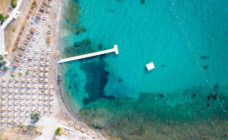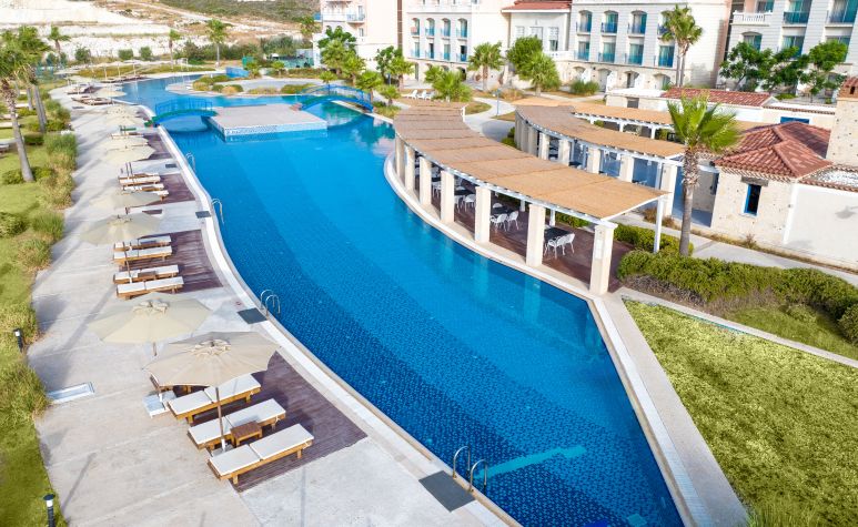 Хотелът се намира на 85 км от летище Измир, на 12 км от центъра на Чешме, на 7 км крепостта на Чешме, на 6 км от центъра на Алачати, на 8 км от известния плаж Ълъджа, на брега на морето. Реновиран 2024 година.