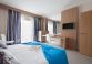 Фамилна стая с балкон и гледка към градината – този тип помещения са с площ от 36 кв.м с балкон и 33 кв.м без балкон. Те са удобен вариант за настаняване на семейства с деца или групи от приятели. Тук могат да бъдат настананени до 4-ма души, тъй като помещението разполага с 2 отделни стаи. Фамилните разполагат още с: