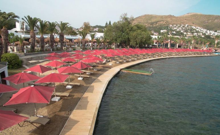 Хотелът e разположен в залив, заобиколен от островите Кос и Калимнос, непосредствено до морския бряг. Центърът на селището Тургутрейс е на 3 км. от хотела , а разстоянието до центъра на Бодрум е 18 км . Най-близкото летище е на разстояние от 52 км в гр. Милас.