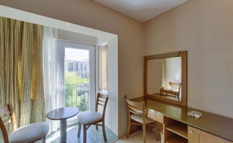 Хотелът разполага общо с 101 стаи. Всички стаи са оборудвани с климатик, телевизор, телефон, баня с вана, сешоар, мини бар (празен), сейф (безплатен), френски балкон. Почистване на стаите - всеки ден, смяна на спалното бельо и кърпите - 3 пъти в седмицата.