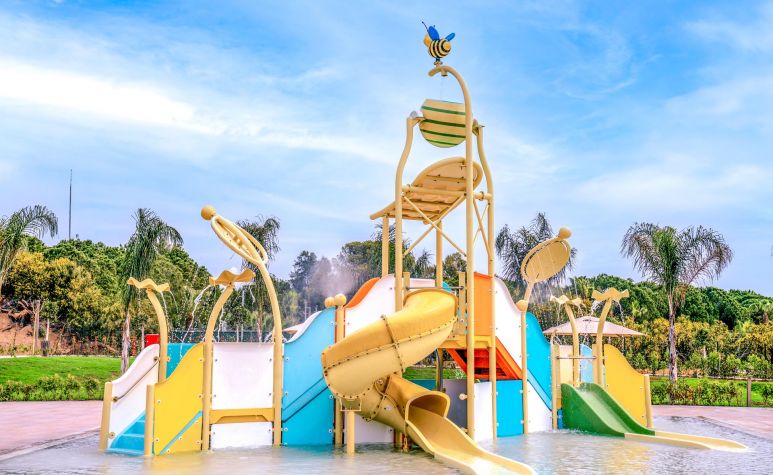 За децата: 2 открити и 1 закрит (отопляем в периодите 21.03-30.04 и 01.10-31.10) детски басейна,3 водни пързалки за деца, воден парк, мини клуб (3-9 г), детска анимация.